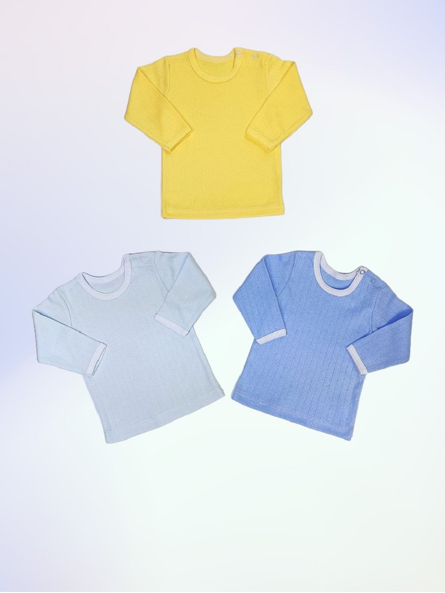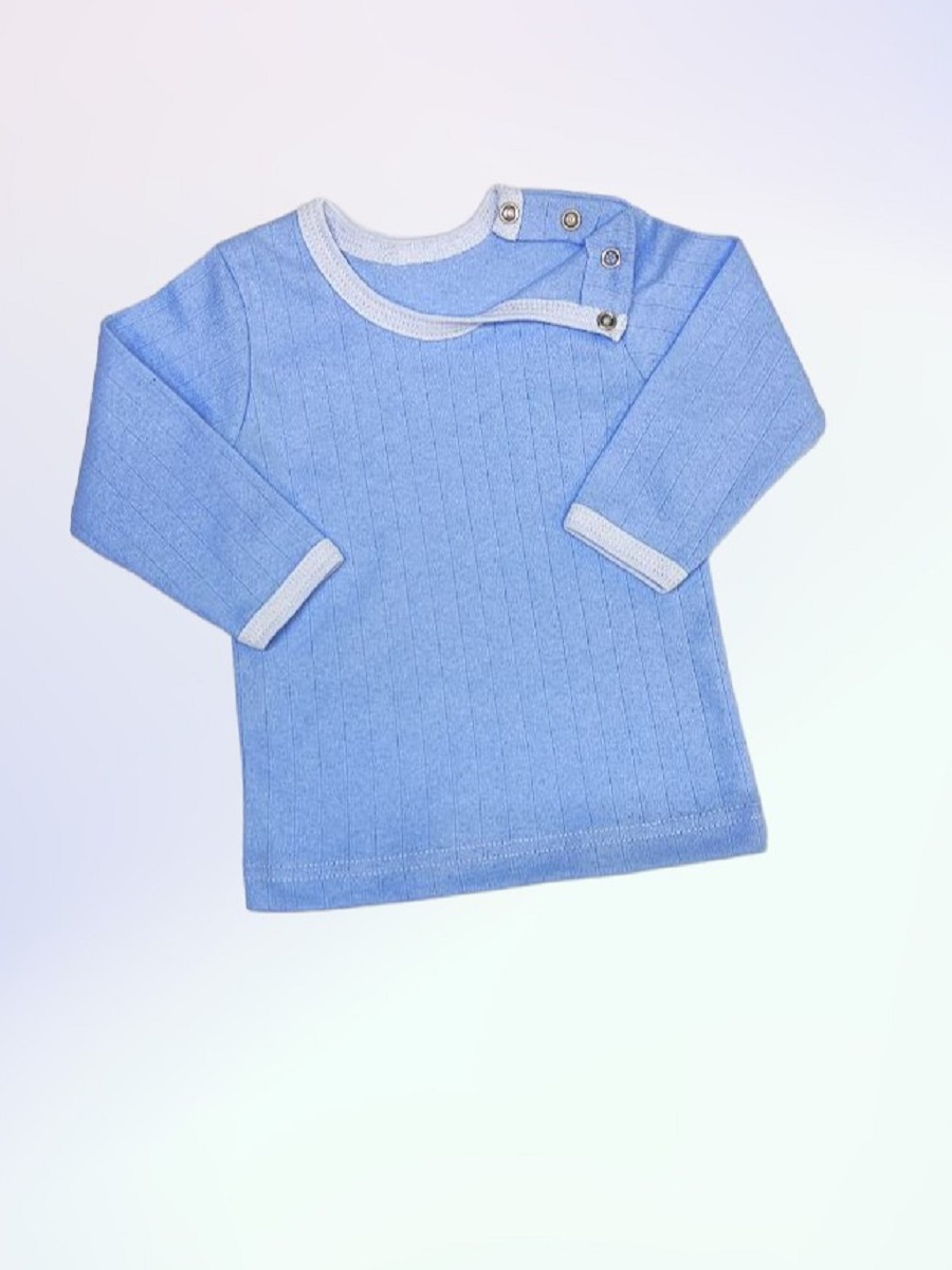 Кофточка однотонная с длинным рукавом, с двумя кнопочками на одном плече.