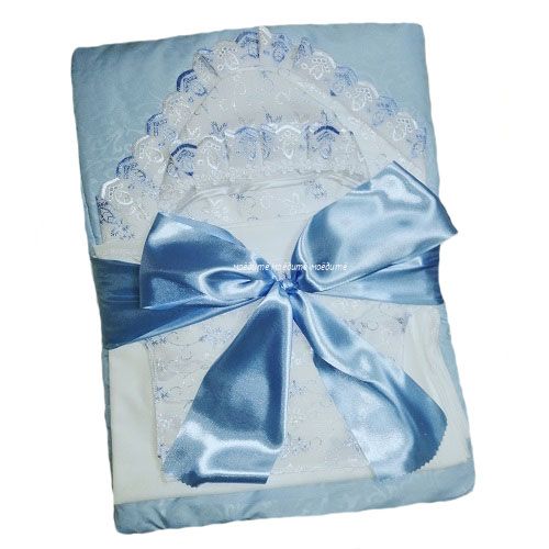 "МоёДитё" комплект на выписку из 9 предметов голубой 150ТС-2С (весна-осень) "Вербена"